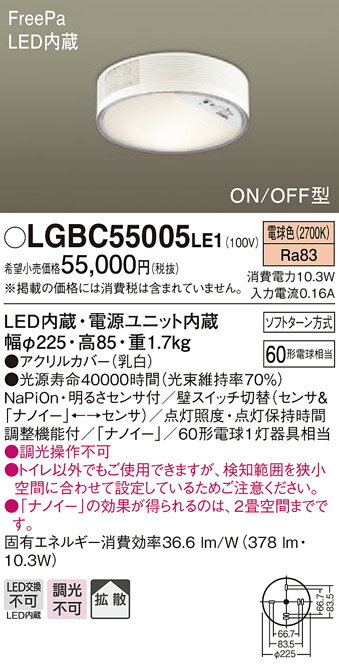 照明 おしゃれ ライトパナソニック Panasonic ナノイー搭載 小型シーリングライト 多目的用LGBC55005LE1 電球色LGBC55004LE1 温白色LGBC55003LE1 昼白色直付タイプ 人感センサー/60形電球相当
