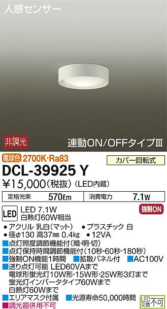 照明 おしゃれ かわいい大光電機 DAIKO 人感センサー付薄型シーリングライトDCL-39925Y プラスチック 白 直付けタイプ LED(電球色) 白熱灯60W相当 ※連動可能型