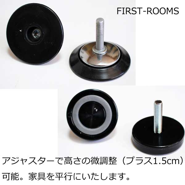 アジャスター付きで約+1cmの範囲で高さ調節が出来ます。